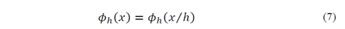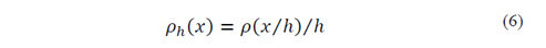 Smaller or larger values of ℎ narrow or widen the function 𝜌 ℎ 𝑥 , respectively. The scale factor 1 ℎ in eq. (6) normalizes the window and the property −∞ ∞ 𝜌 𝑥 ℎ ℎ 𝑑𝑥=1 is satisfied. Thus, the polynomial approximation function 𝜙 ℎ also needs to be scaled by the parameter ℎ: