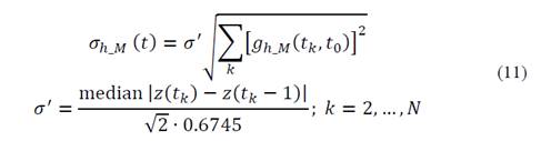 where Γ is the threshold of the confidence interval and the standard deviation of the estimated signal 𝑦 ℎ_𝑀 𝑡 is defined by [15]: