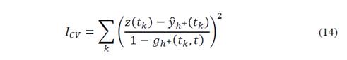For the linear filter defined in eq. (4), the CV function with an estimator support ℎ + is represented as a weighted sum of the squared residuals [15]: