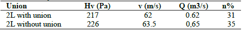 In the ventilation bench, the shock losses, with straight elbows were determined, and they were compared with shock losses, generated when they use rounded elbows. Table 4 presents a summary of results. The reduction percentage of losses clearly shows that when the elbow section is properly designed, an energy saving, of approximately 43% can be achieved, when the frequency is 60 Hz. Weather conditions in the laboratory were: 29°C dry temperature and relative humidity, 62%.