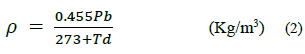 The air density can be calculated, [2] with dry temperature and atmospheric pressure eq. (2).