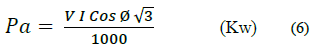 Where, V is voltage in V, I is current in A, and Cosϕ is dimensionless power factor.