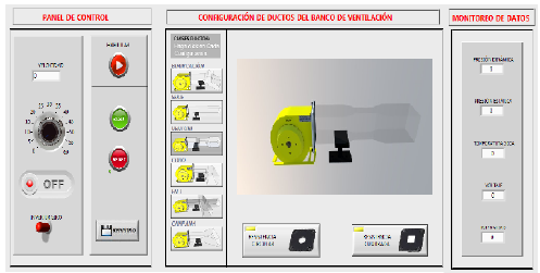 Given the aforestated information, they were performed a series of simulations which can serve as a basis for optimizing the auxiliary ventilation system in underground mines; to accomplish this, a ventilation test bench was used, located in the Francisco de Paula Santander University in Cúcuta, Colombia. This article is the result of the analysis of parameters related to fan performance, used in one testing bench. Through the test bench, parameters such as temperature, pressure, the presence of methane (CH4), electric current and voltage are measured. The graphic programming was made using the LabVIEW 2011 software; this software is a graphical programming platform that helps progress from design to testing. The basic scheme of the structure consists of sensors, a signal processing circuit of a data acquisition card (DAQ) and a computer. The System has a frequency inverter, which increases or decreases the air speed according to requirements of flow, gas dilution, or temperature decrease. The ventilation test bench is equipped with tools and technology, for use in the development of academic research and for improving mine safety. [10]