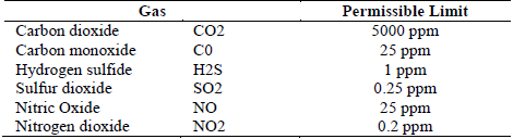 Article 38 of decree 1886 of 2015, safety regulation in underground work, considers an appropriate mining atmosphere to have a 19.5% concentration of oxygen. Table 1 shows the permissible limits of frequent gases in underground mines (article 39 of decree 1886).