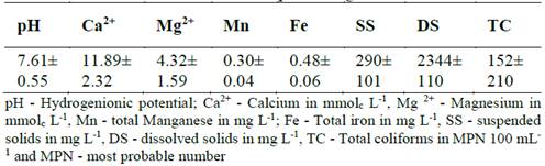 Table 2: Mean and standard deviation of physical, chemical and microbiological characteristics of wastewater from the processing of cashew nuts.