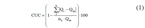 where CUC - Christiansen uniformity coefficient, %; Qi - flow of each drip emitter, L h - 1; Qm - mean drip emitter flow, L h - 1; ne - number of drip emitters.
