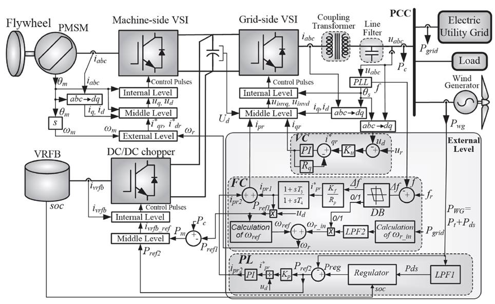 Figure 1: Model of the proposed PCS/FESS-VRFB controller.