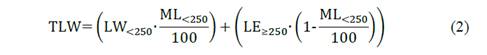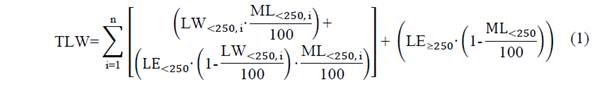 TLW value depended on the fractions number of size below 250 µm considered (n). Finally, a second term was included to quantify the HM contribution by the size fraction greater than or equal to 250 µm, if this size fraction was not susceptible to transportation, but leached by road runoff. The term (1-ML<250/100) indicated the HM proportion associated with this size fraction (see Table 3).