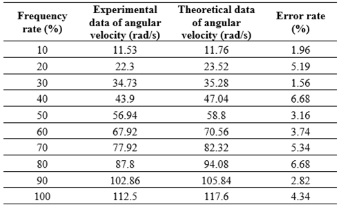 Table 4: Comparison of theoretical and practical angular velocity data from the power unit