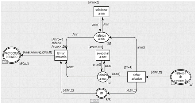 Validation of the assistive technology device design for shoulder rehabilitation was tested by means of simulation with colored Petri nets; these simulations were used to validate the degrees of freedom and maximum and minimum movement ranges of the assistive technology device when carrying out telerehabilitation. Fig. 9 shows the system model detailing all the anatomical movements that can be rehabilitated by the assistive technology device.