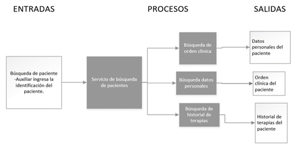This tool is responsible for searching in the patient database and classifying patient data in different categories to facilitate access to the appropriate information for each agent in the system. The classified information is related to general patient information and treatment information. Fig. 16 shows the service as a process, indicating its inputs and outputs.