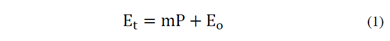 En el análisis de estas dos variables es importante considerar que la variación en los volúmenes de producción impacta positivamente o negativamente el consumo de energía. Se observa que a medida que la producción disminuye es posible que aumente el consumo total de energía, como se aprecia en la ecuación de la línea recta: Et=m (P)+E0, porque el gasto energético por unidad de producto aumenta, esto debido a que se incrementa el peso relativo de la energía no asociado a la producción respecto a la energía productiva. Autores como Castrillón, R. et al., 2014; Monteagudo, J. & Gaitán, O. 2005 [3,25]; manifiestan que, para lograr mejorar el desempeño energético, se deberá establecer el índice de consumo mínimo alcanzable, que se obtiene cuando se trabaja a niveles productivos iguales o superior a la producción a la máxima eficiencia-PME o producción crítica.