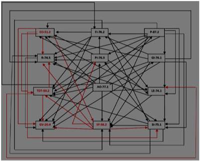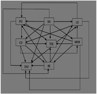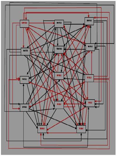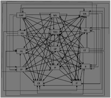 En esta etapa la Relación entre los Actores del Negocio(RA) constituye la variable más causal y a su vez en el hotel es una de las variables con el desempeño más crítico, lo cual tiene una influencia negativa en el resto de las variables que se relacionan como se muestra en la Fig. 4. En el diseño estratégico básico del hotel aunque la máxima dirección conoce y transmite a los subordinados de forma general la misión, la visión, las estrategias de la organización; fomentan la participación y colaboración de forma sistemática en actividades de mejora y en la toma de decisiones;no se reconoce la existencia de tecnologías que contribuyan a fortalecer las relaciones de comunicación con los clientes estratégicos y los proveedores más relevantes y al mismo tiempo se recoge y gestiona información parcial del comportamiento del mercado.