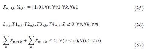 In the third group of constraints, expressions (20) to (29) and (32) to (34) stay as in single load model. Moreover, the following expressions, for the mixed load model, are defined: