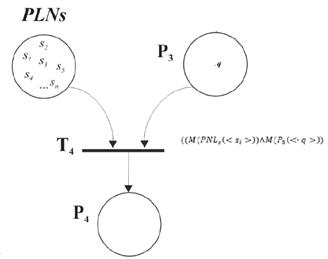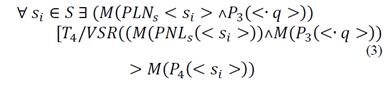 A partir de cada uno de los lugares de anidamiento, se traza una trayectoria que partiendo de un lugar de anidamiento PLN s , que contiene una marca del tipo s i y una marca de comportamiento normal q; conduciendo finalmente al marcado M(P 4 (< s i >)), que evidencia la necesidad de un determinado tipo de servicio 𝑠 𝑖 .