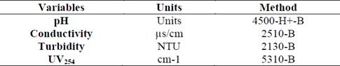 In developing countries, the majority of sources for drinking water supply systems are affected by natural phenomena and anthropogenic effects that deteriorate their quality [1]. Limitations on the efficiencies of the production processes result in drinking water that complies with established quality standards [2-4]. Various treatment technologies, which use several combinations of processes, are available for the purification of surface water, including coagulation/flocculation, sedimentation, filtration, disinfection and pH stabilization [2,5,6].