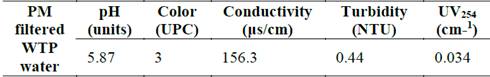 The laboratory-scale study used filtered water from the Puerto Mallarino WTP, which had undergone coagulation, flocculation, clarification and downstream sand and anthracite filtration [25,26]. Table 1 shows the characteristics of the filtered water.