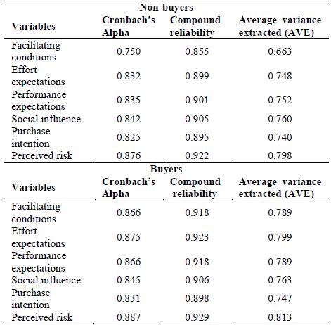 One variable linked to the tools facilitating the use of this technology is facilitating conditions, which have been validated for the group of buyers, confirming the proposal of the UTAUT model regarding electronic buyers’ need to have technical conditions that enable them to make purchases effectively; however, this variable was not validated for non-buyers.