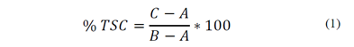 where: A is the petri dish mass in grams, B is the petri dish mass plus the original sample in grams, and C is the petri dish mass plus the dry sample in grams.