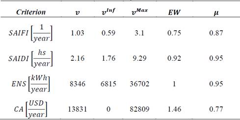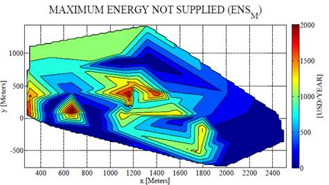 The Energy Not Supplied was 8346 MWh year (1.8 of the total demanded energy), very close to the minimum scenario (1.4≤ENS≤7.8). Therefore the results obtained by the proposed method are satisfactory.