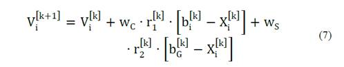 The term w C ∙ r 1 k ∙ b i k − X i k represents the memory or cognitive ability of the particle: it is attracted to the best point in the search space achieved individually in its past life.