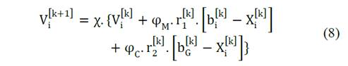 In the Classic PSO model there is a set of alternatives called population or swarm (whose feasibility exhibits degrees of aptitude), which are called particles. From one iteration to the next, each particle moves in the search space, according to a certain rule of motion that depends on three factors, which are explained below. Vector b i k represents the best positions that the particles have reached individually in the previous iterations (an aspect referred to in the model as past life of the particle); Then it will correspond to the individual optimum of the particle i in its past life. In the same way, the global optimum achieved by the particle system will be indicated by b G k until the present iteration, according to the rule of motion in eq. (6) [7]: