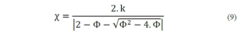Where χ is called the Constriction Factor, and is obtained by the following expression:
