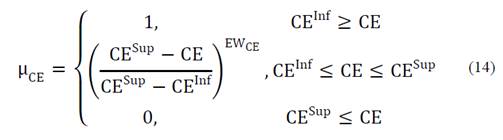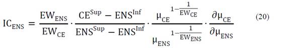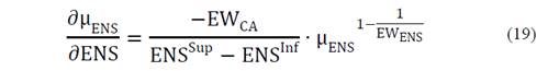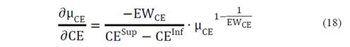 Where ∂ μ CE ∂CE and ∂ μ ENS ∂ENS are the derivative of the criteria analyzed with respect to their fuzzy functions (see eq. (13) and (14)).