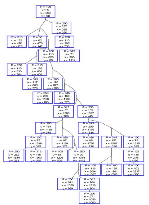 In Fig. 3, the technical characteristics of the distribution system analyzed are presented. The parameter 'P' is the installed power of the TS, 'u' is the number of connected users, 'x' and 'y' are the respective TS coordinates.