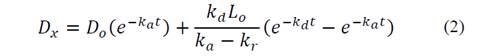 Donde, 𝐷 𝑥 es el déficit de oxígeno disuelto a cualquier distancia aguas debajo de la corriente, 𝐷 𝑜 es el déficit inicial de oxígeno disuelto, 𝐿 𝑜 es la DBO última de la corriente, 𝐿 𝑥 es la variación espacial de la DBO última, 𝑘 𝑎 es la constante de reaireación, 𝑘 𝑑 es la constante de desoxigenación, 𝑘 𝑟 es la constante de remoción total de la DBO, y t es el tiempo de viaje de la corriente de agua.