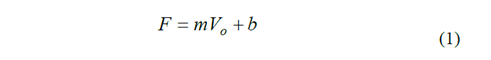 It must be remarked that the FlexiForce sensors exhibit a subtle saturation effect in the form of hyperbolic tangent in regard to Vs variations; this avoids that m and b can be recalculated when Vs is changed given that k in (2) changes from one sensor to another [16]. In practice, this implies that (1) is valid only for a constant Vs during sensor operation: