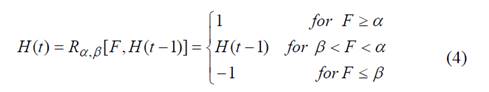 The function Rα,β[F,H(t-1)] is known in literature as the Preisach Operator or Hysteron, where parameters α and β come from the discretization of F into nh levels, summing a total of nq Hysterons:
