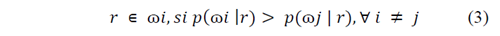 Para clasificar un pixel r en una de las clases es necesario conocer la siguiente probabilidad condicional: