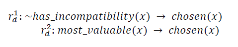 In order to facilitate the readability, hereafter we use names b i to refer to beliefs and names r j to refer to standard rules.
