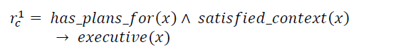 Definition 2. A motivating rule rm is an expression of the form . In the case of the atomic formulas or the premise, they have to be unified with a belief of 𝒦 and in the case of 𝜓, it represents a goal. All 𝜓 are considered a sleeping goal and hence belong to