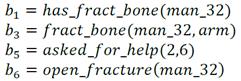 After the unification of variable x with man_32, we have a new belief: b4= injured _ severe(man_32). In the same manner, in motivating argument variables x and y can be unified with 2 and 6 respectively, which entails g
