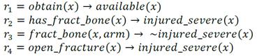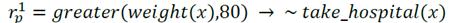 r1 m = injured_severe(x) → take_hospital(x) // if person x is not severely injured, then take x to the hospital