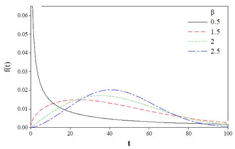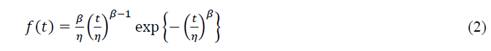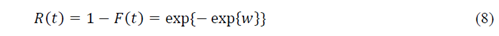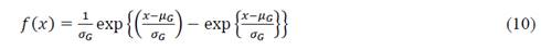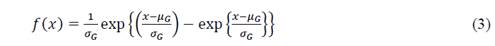 In eq. (2), t >0 and β and η are the Weibull shape and scale parameters respectively. On the other hand, the Gumbel distribution is given by