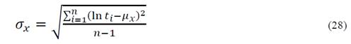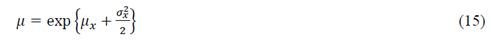 In eq. (13) μx and σx are the log mean and log standard deviation. Similarly, the Normal distribution is given by