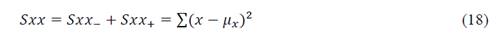 Then, due to the symmetrical behavior of the lognormal data logarithm, then in the lognormal case, the contribution before and after the mean must be equal; it is to say for the lognormal case Sxx--= Sxx+ .
