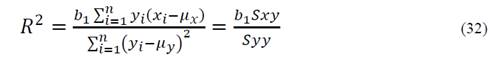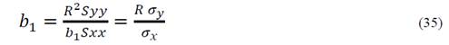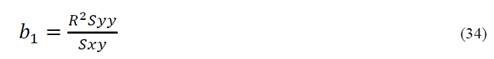 Secondly, in doing this it should be observed that by taking away Sxy=b 1 Sxx from eq. (31), and by replacing it in eq. (34), b 1 is directly related with σ x , σ y and R 2 , as follows