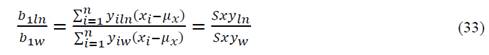 In order to show that the regression coefficients (slopes) b 1ln /b 1w ratio completely incorporates the skew behavior of the Weibull distribution represented by Sxx, it is necessary to first show that based on the b 1ln /b 1w ratio given by