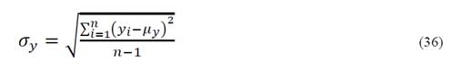 By using the Weibull y vector defined in eq. (21) (or the lognormal y vector defined in eq. (26)), estimate the Weibull (or lognormal) variance of y as Syy=∑(y i -µ y ) 2 .