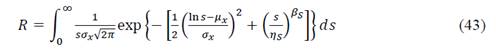 For the lognormal-Weibull stress-strength, the formulation given in eq. (43) was used