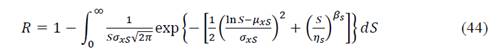For the Weibull-lognormal stress-strength, the formulation given in eq. (44) was used