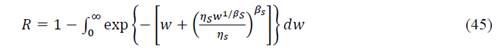 Finally, for the Weibull-Weibull stress-strength, the formulation given in eq. (45) was used