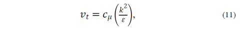 Turbulent eddy viscosity is then calculated when k and ε have been solved with the Prandtl-Kolmogorov expression [17].