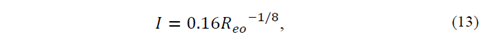 where, u represents the main channel velocity, I is the turbulence intensity, Reo is the jet Reynolds number, L represents the length scale, and R is the hydraulic radius.