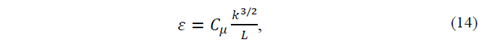 This model utilizes an equation for the turbulent energy dissipation , instead of the direct determination of the length scales, L, together with the kinetic energy k equation [17].