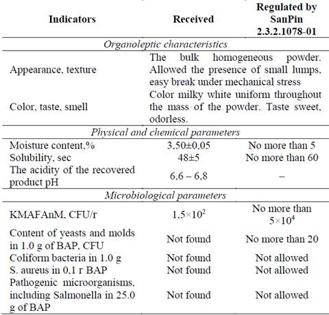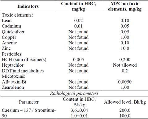 It was found that the prototypes of NBC after generation and storage throughout the month 1,3,6 comply with San PIN number 2: 3.1078 - 01 in terms of the number of mesophyllic aerobic and facultative anaerobic organisms (not more than 5 × 104 COE/g).